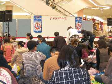 「走らないでくださ~い。」と声をかけている店員。子供がついていけなくて転んでも走るお母さん。う~ん、止まって子供が起き上がるのを助けるのが母ゴコロか子供が見やすいように少しでも早く行って場所をとるのが親ゴコロか。微妙。