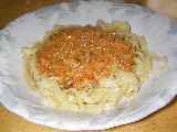 ほぐした鮭がトマトソースと混ざっています。クリームソースなのでとっても優しい味がします。もちろん小さい子もしっかり食べられます♪