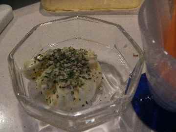 マヨネーズとハーブ混ぜるのって、ほんとおいしいんです。大根、きゅうり、ニンジン、セロリなどにつけてポリポリ。これからの季節、お酒のおつまみにいいですよ。特にメタボを気にしているパパにはぜひ。 (マヨネーズはカロリーおさえたもので!)よくSBとかで出ているビンのスパイスがありますよね、その中に気に入っているのがあれば、それでもやってみたらいいと思いますが、特に気に入ってるのがない方はこういうミックスしたものをまず使ってみてくださ~い。