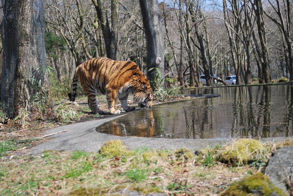 と、とらがぁ~。のしのし歩いたかと思うと、水飲みに。