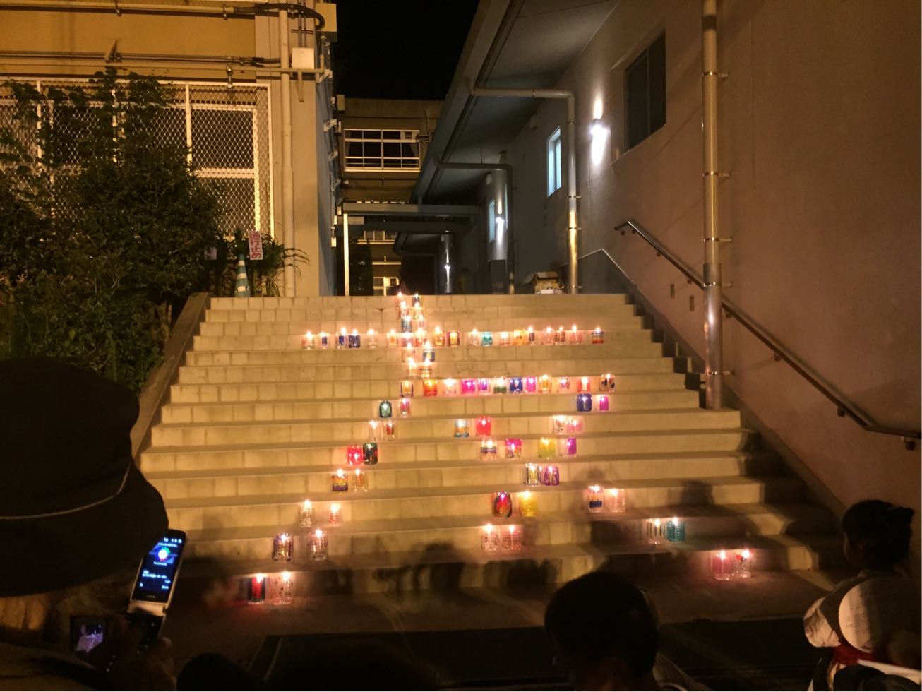 子供たちが並べてくれた、万灯絵も無事点灯し、夏祭り終了〜。