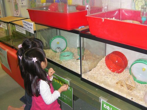 子供たち、かぶりついてハムスター見てました。ハムスターも出てくるのが恥ずかしそうでした。