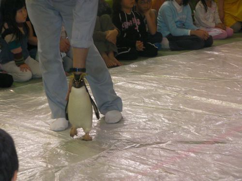 そして今日ひそかにうちの娘が一番楽しみにしていたのが、サンピアザ水族館からきてくれたペンギンさん。ぬいぐるみみたい。