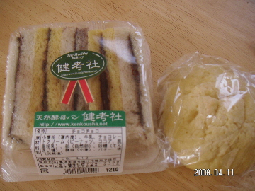 娘の希望で、チョコサンドイッチ210円、メロンパン140円なり。